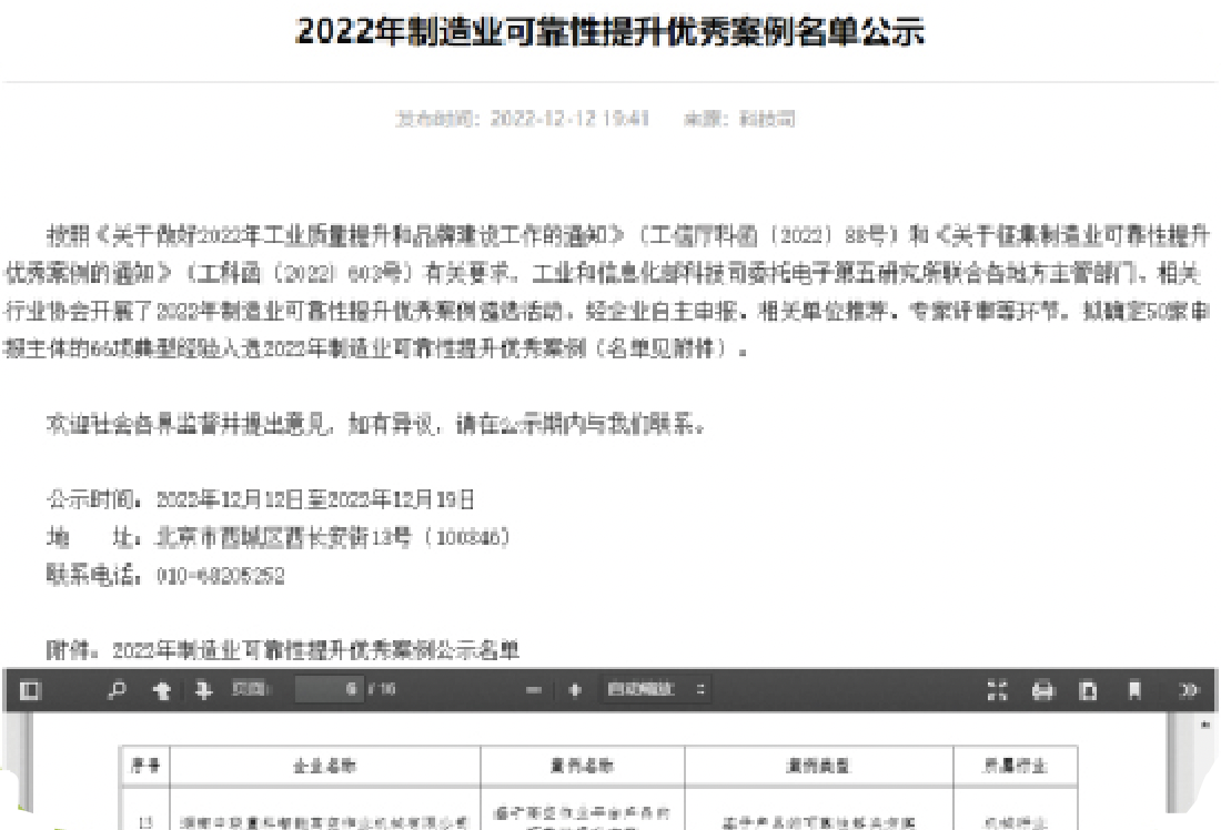 賦能行業(yè)高質量發(fā)展,積極推進數字化、智能化、綠色化轉型,“基于高空作業(yè)平臺產品的可靠性提升方案〞成功入選工信部2022年制造業(yè)可靠性提升優(yōu)秀案例。