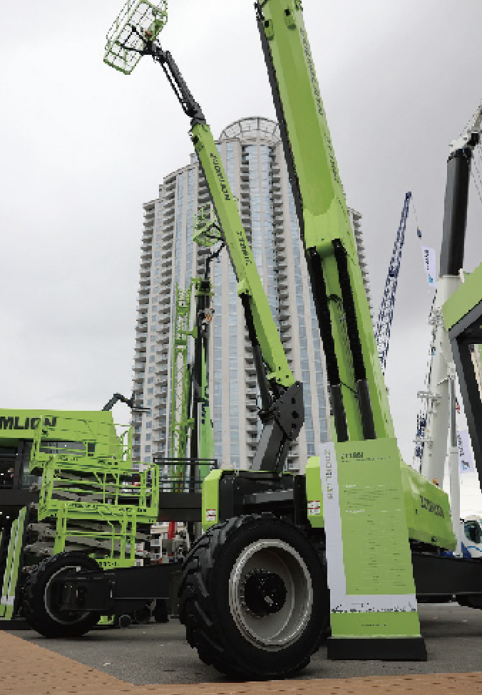 產品登陸美國工程機械展,ZT58J-V超高米段直臂式高空作業(yè)機械亮相北美,實現中國超高米段高機北美市場的突破。